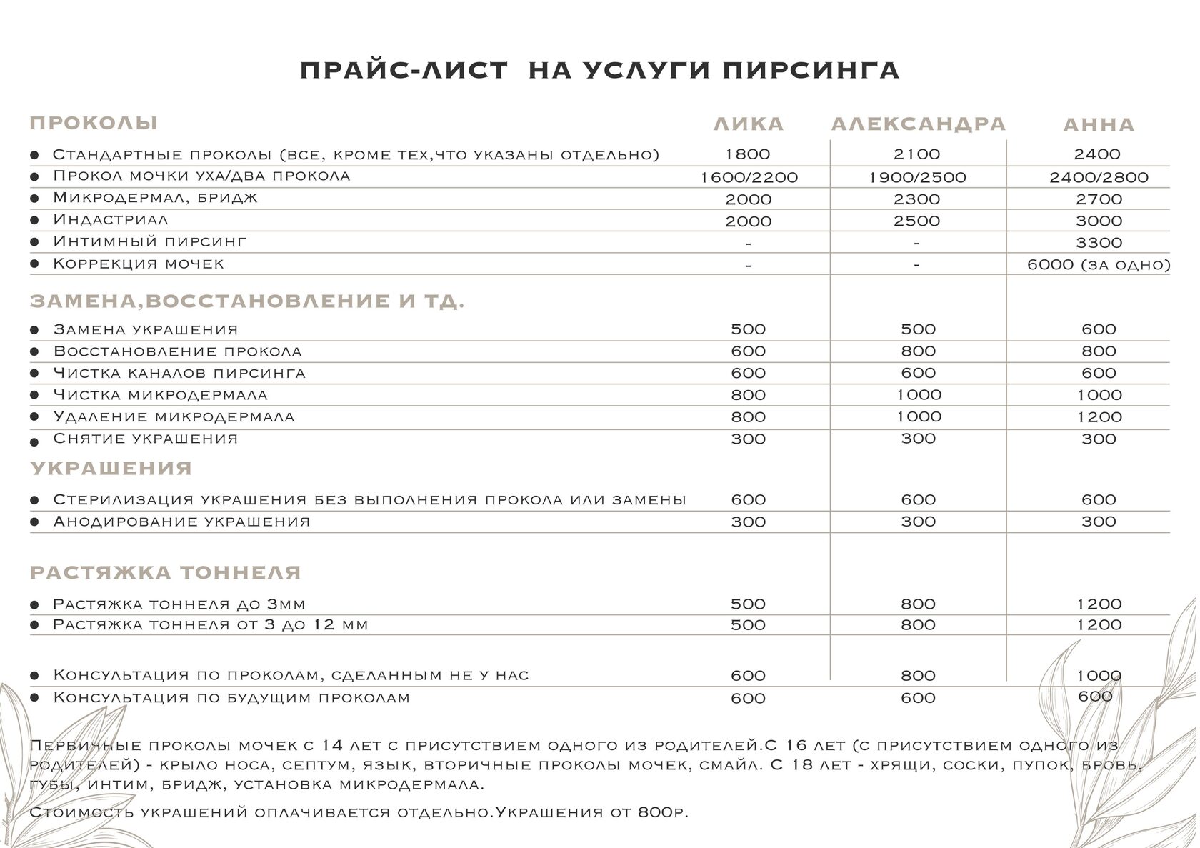 Среди мастеров есть участники Ассоциации профессиональных пирсеров России (RuAPP). Мастера ежегодно посещают конференции по пирсингу и работают в сфере более 2-9 лет